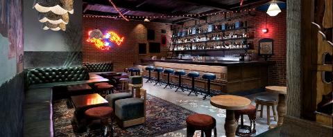 Good thing you have Lip Smacking guiding the way to the next venue because you’d probably stroll right past it otherwise. Here Kitty Kitty Vice Den is as clandestine as it gets. This unique craft cocktail bar is hidden inside an unassuming bodega in the Food Hall. The hostess will push open an unobtrusive bookcase to reveal the exciting speakeasy inside. Sultry and seductive, this stylish speakeasy is done up in mini disco balls, lanterns, and parasols hanging from the ceiling. Sit back and enjoy a "One Night Stand.'' No, not that kind, but the fiery tequila blanco type that's strawberry infused with a spicy Tajin rim.